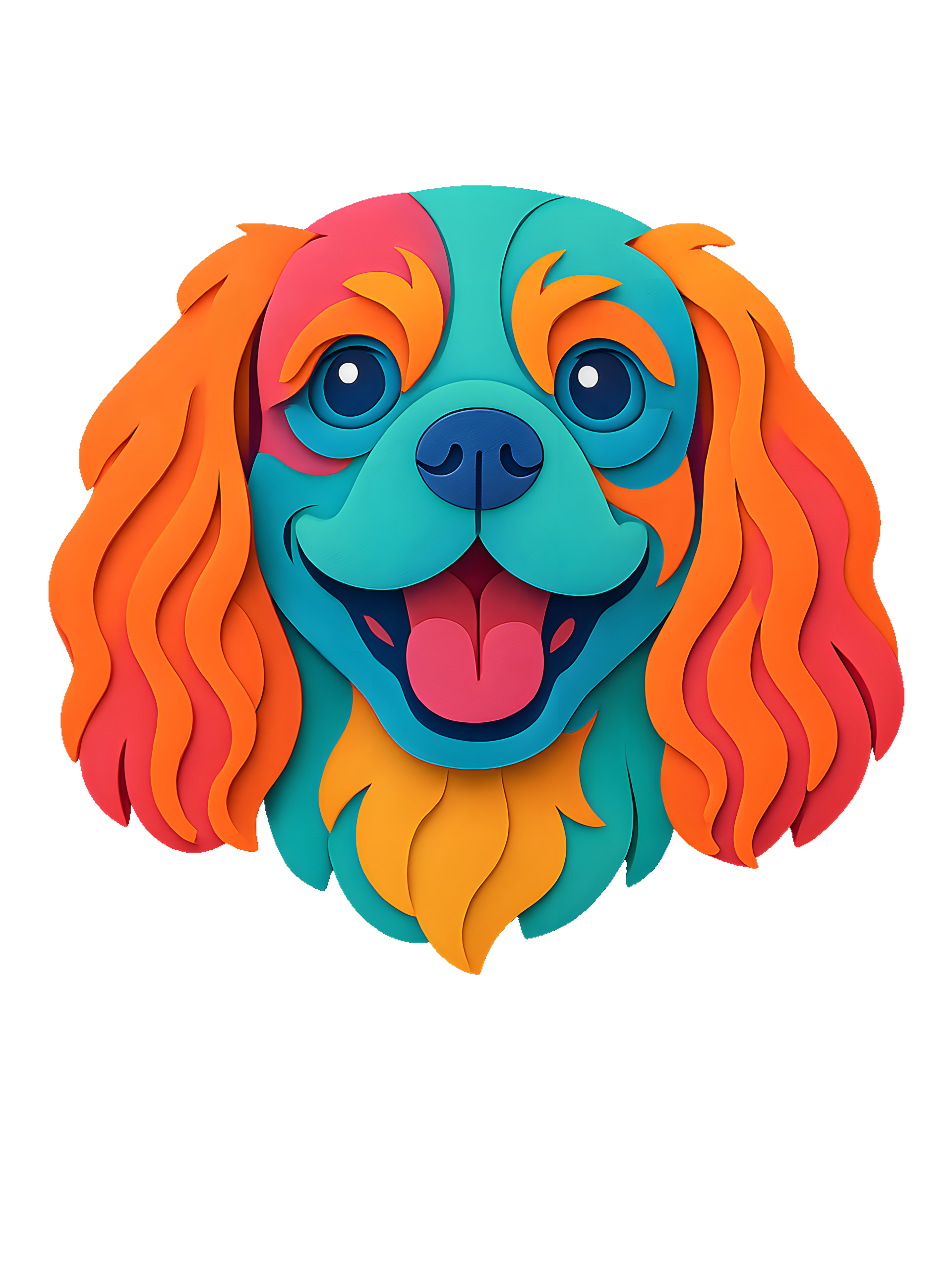 Cavalier King Charles Spaniel in paper cutout style with bright colors