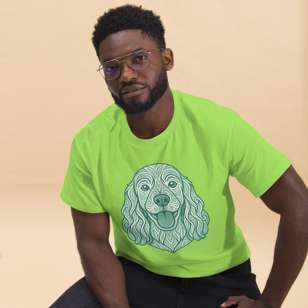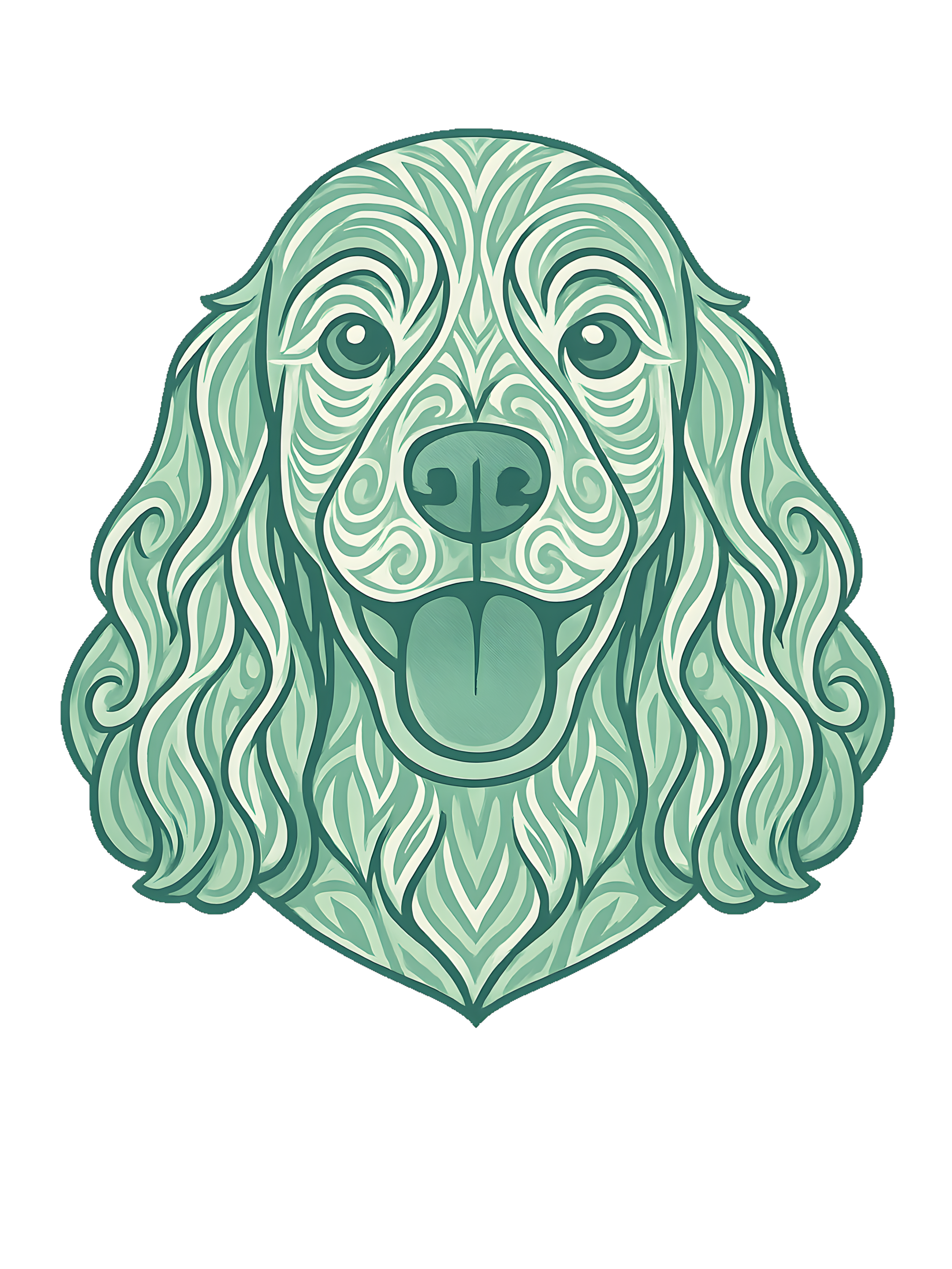 Cocker Spaniel in tribal pattern with pastel greens and blues